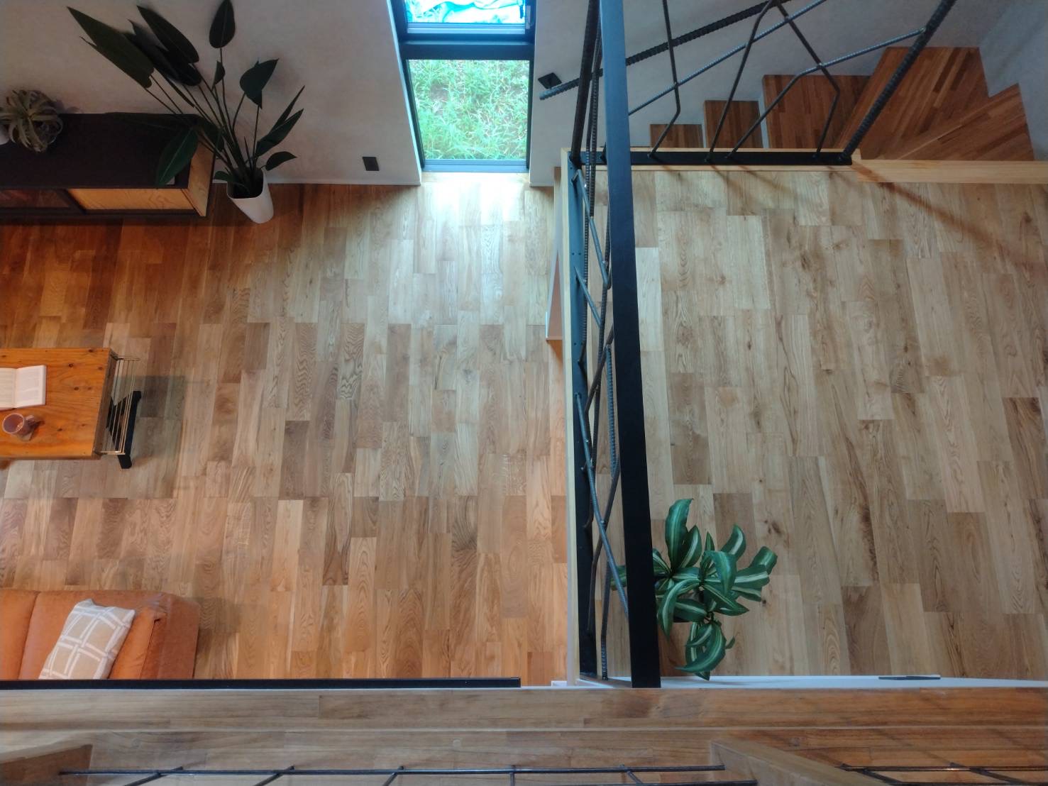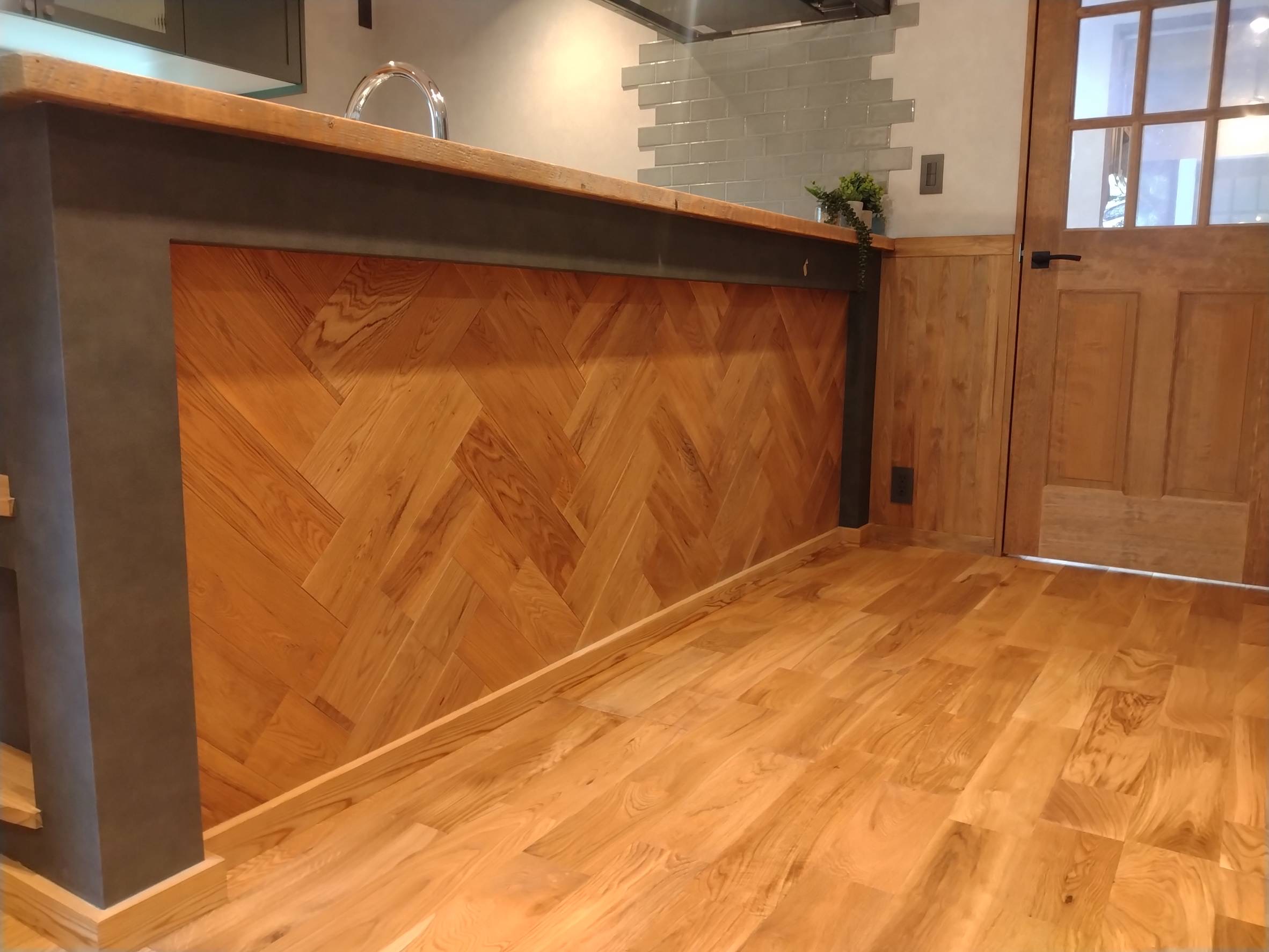 節や荒々しい木目が入るナチュラルグレードです。ワイド120ミリ幅は存在感が抜群です。