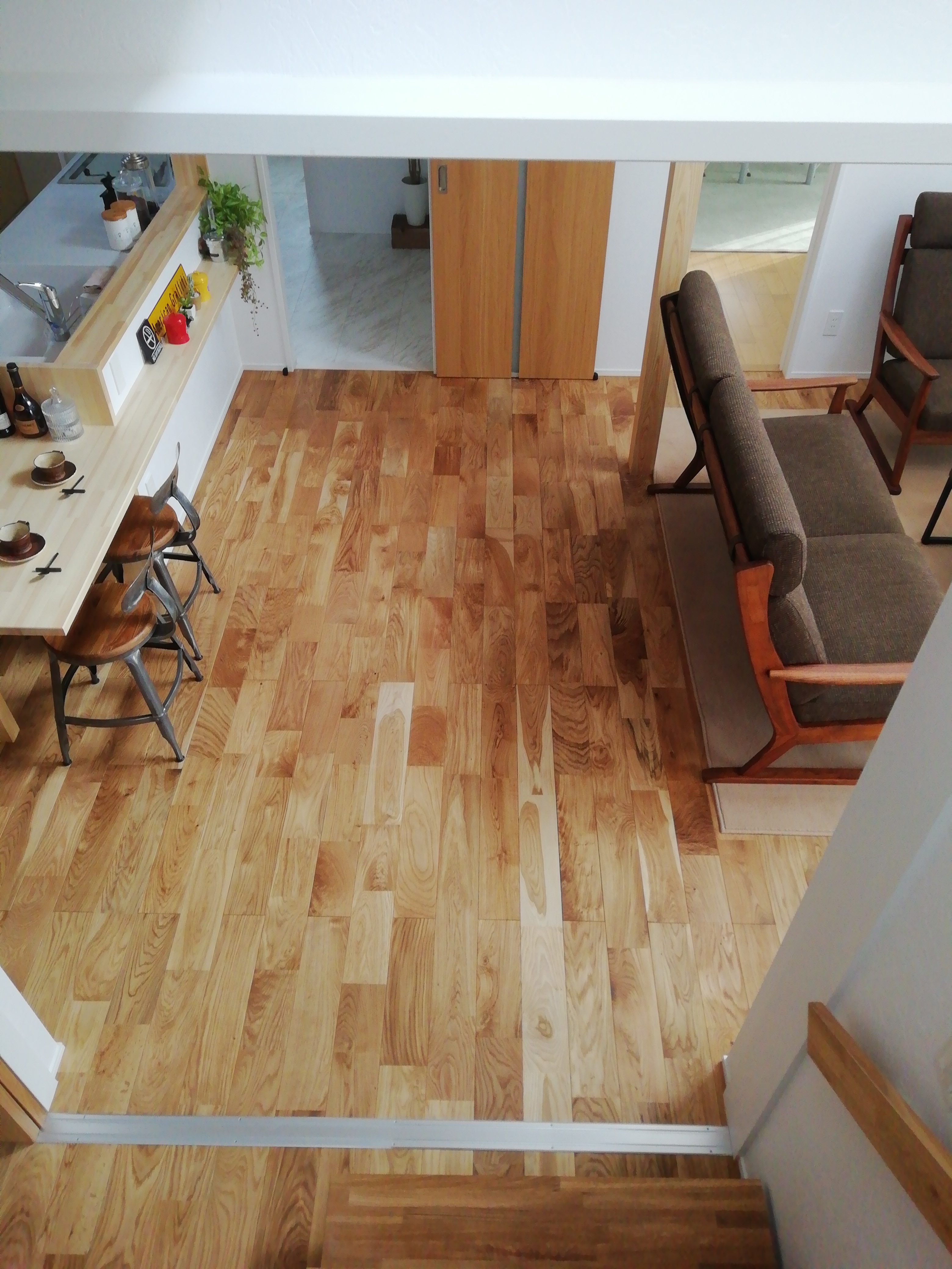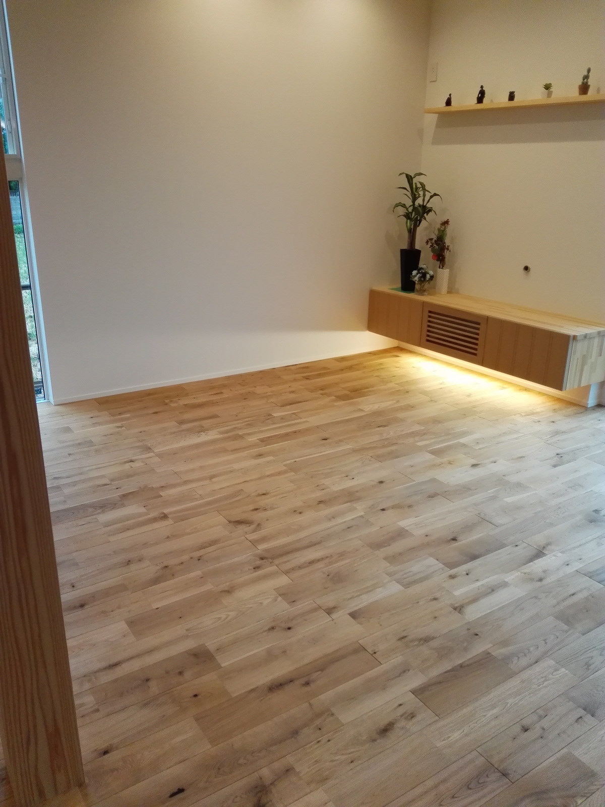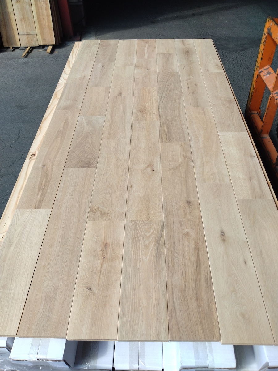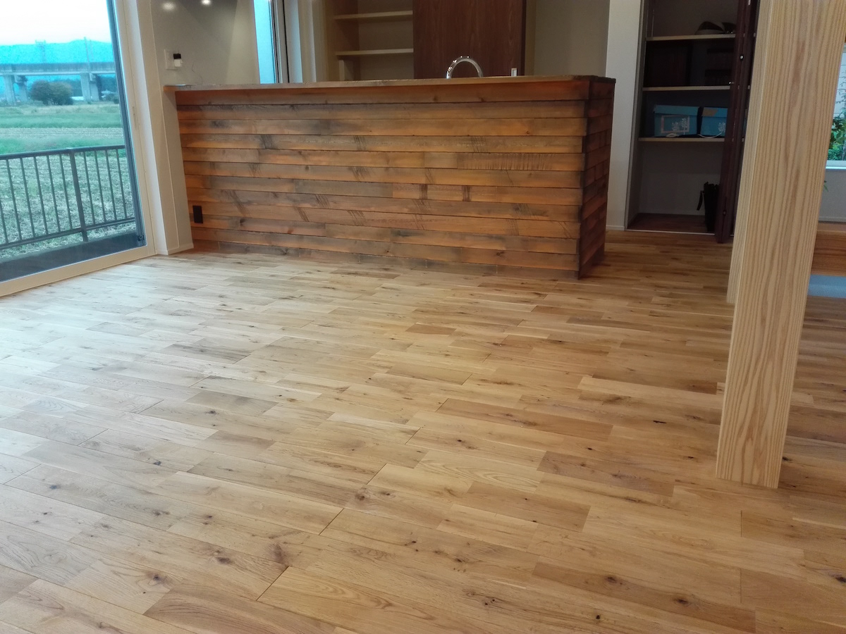 節や荒々しい木目が入るナチュラルグレードです。ワイド120ミリ幅は存在感が抜群です。